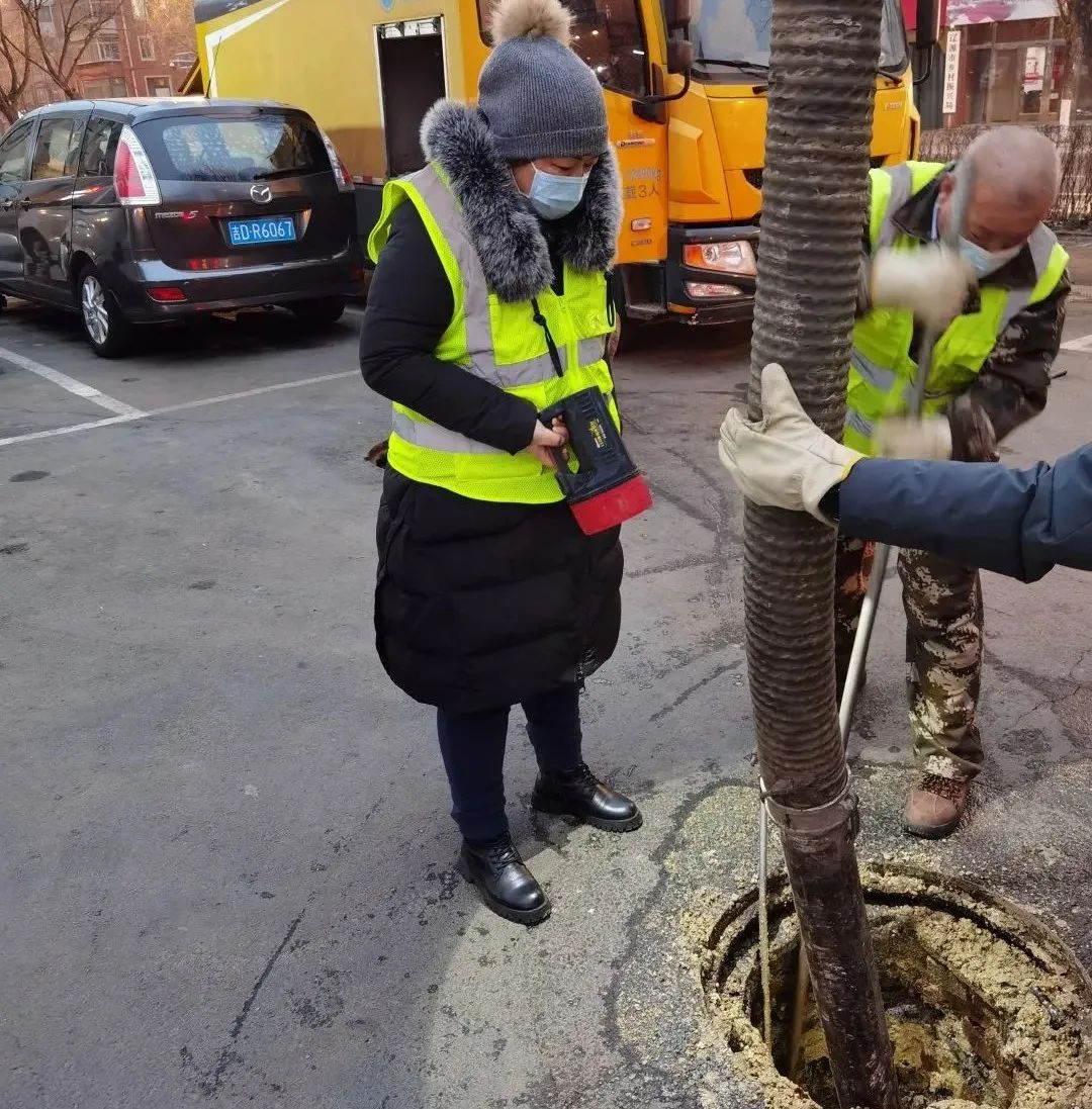 福镇社区排水遇到问题,求助帮忙解决,白玉晶带领工人赶到现场进行排查。由于白玉晶的排水维护队仅负责市政道路排水管网及设施,社区管网超出维护范围,工人们不了解排水走向,只能一个一个排水井进行排查,最终找到堵点,解决了难题。3月13日,多寿小区污水外溢。白玉晶接到求助后,紧急调动车辆和工人赶到现场,直到晚上9点才把管路疏通,将污水排放出去。3月17日,白玉晶再次接到居民求助,东辽县老粮油公司住宅楼下水淤堵,已返进室内,居民无法正常生活。白玉晶带领团队迅速赶到,经查系住户的出户管淤堵,导致楼上及自家的排水无法排放,白玉晶带领工人将污水通下来了,居民悬着的心也放下了。