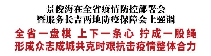 景俊海指出,当前,全省疫情防控形势依然严峻复杂,必须重视重视再重视、坚持坚持再坚持、攻坚攻坚再攻坚,以更坚决态度、更迅速行动、更彻底措施,全力打赢疫情防控保卫战歼灭战阻击战。长春市、吉林市要聚焦“人”这个核心要素,采取更加适应奥密克戎变异毒株传播特点的防控措施,精准破解难题,补齐短板漏洞,确保各项工作顺利推进、取得实效。四平市特别是伊通县等疫情零星散发地区要注重抓早抓小,彻底把疫情扑灭在萌芽状态,坚决防止进一步社区传播,尽快实现全面清零目标。省内未发生疫情的地区要坚持外防输入、内防反弹,进一步完善常态化疫情防控工作体系,坚持因地制宜,科学精准施策,稳步调整分区分级管控措施,最大限度减少疫情对经济社会发展的影响。