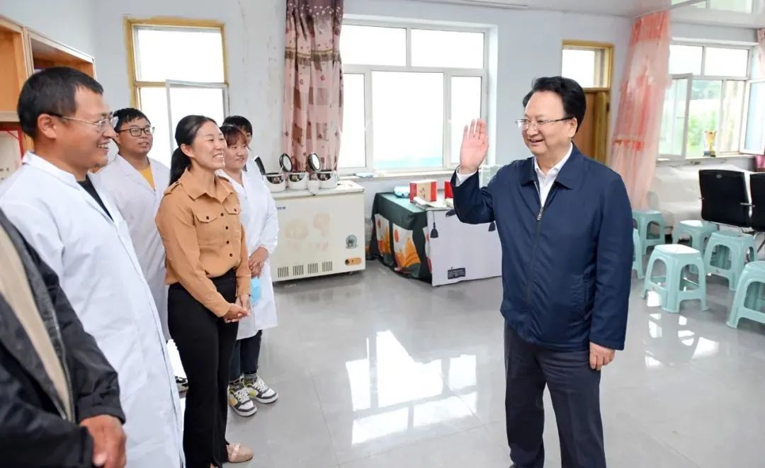 8月29日,省委书记景俊海到长春公主岭市调研,在南崴子街道南崴子村公主岭稻渔科技小院与科研人员亲切交流。