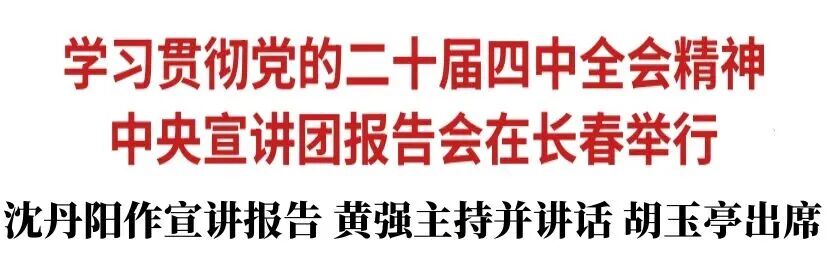 按照党中央统一部署,11月6日,学习贯彻党的二十届四中全会精神中央宣讲团报告会暨省委理论学习中心组集体(扩大)学习会在长春举行。中央宣讲团成员,国务院研究室党组书记、主任沈丹阳作宣讲报告。省委书记黄强主持报告会并讲话。省委副书记、省长胡玉亭出席。