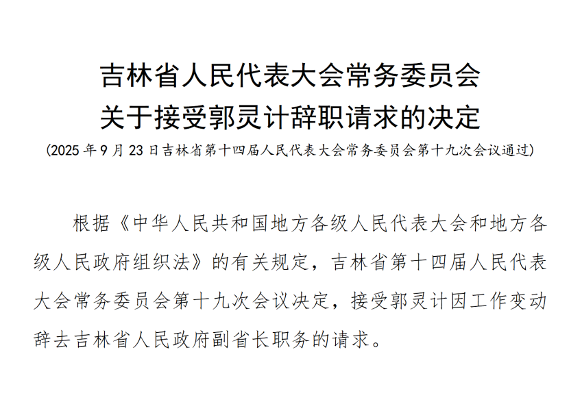 吉林省人民代表大会常务委员会关于接受郭灵计辞职请求的决定