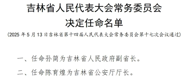 吉林省人民代表大会常务委员会决定任命名单