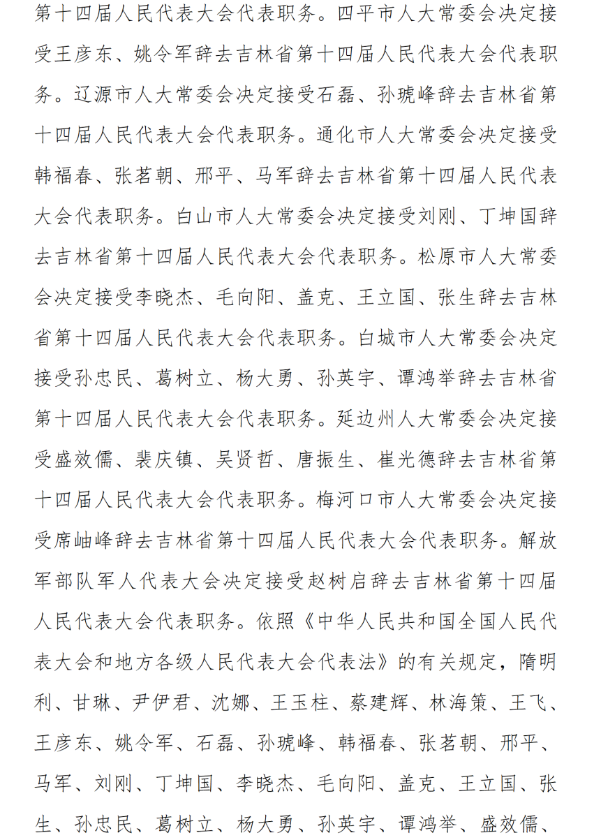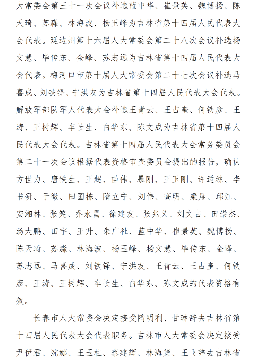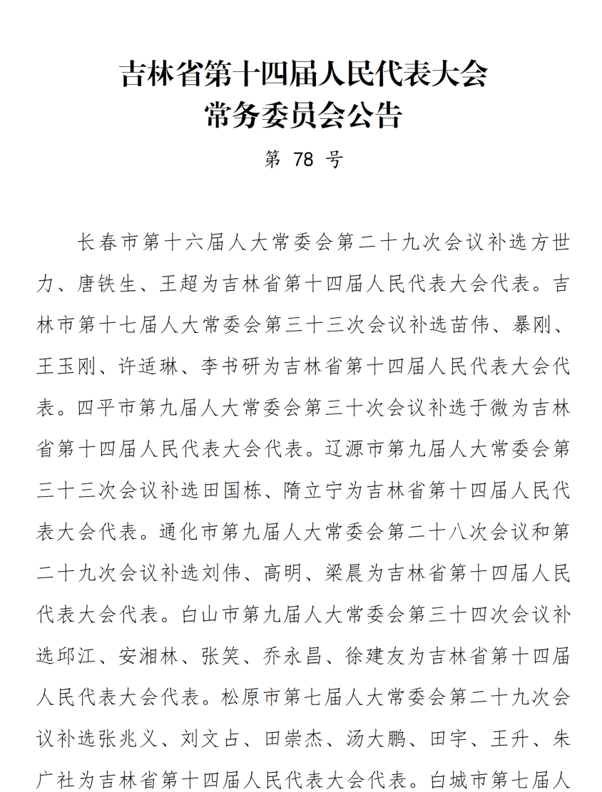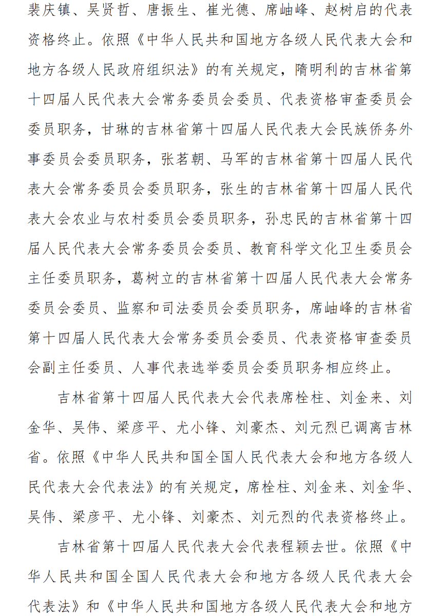 吉林省第十四届人民代表大会常务委员会公告