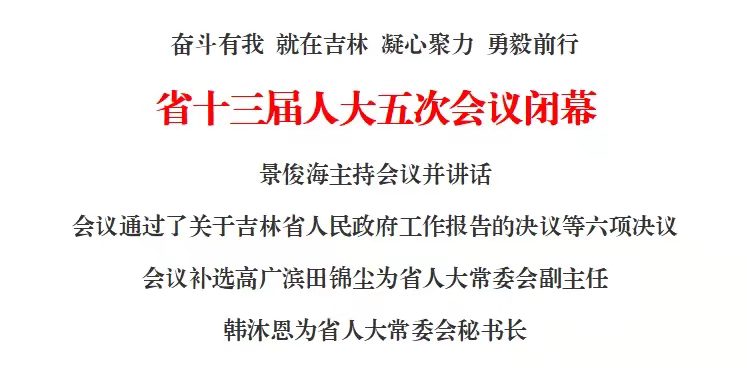 吉林省第十三届人民代表大会第五次会议历时3天,在全体代表的共同努力下,取得了圆满成功,1月26日下午在省宾馆闭幕。
