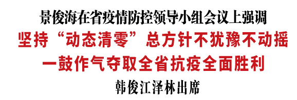 4月18日,省委书记景俊海主持召开省疫情防控领导小组会议,听取当前疫情防控形势汇报,研究完善下步工作举措。景俊海强调,要深入贯彻习近平总书记关于统筹疫情防控和经济社会发展的重要讲话重要指示精神,按照孙春兰副总理部署要求,坚持“动态清零”总方针不犹豫不动摇,持续巩固拓展疫情防控成果,一鼓作气夺取全省抗疫全面胜利。省委副书记、省长韩俊,省政协主席江泽林,省委副书记刘伟出席会议。