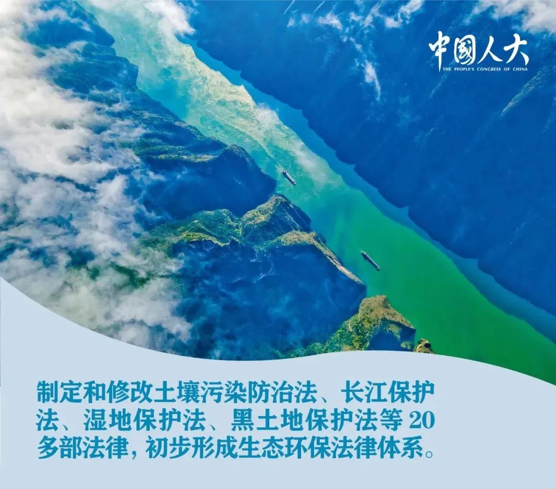 “良法是善治之前提。”十三届全国人大常委会先后制定土壤污染防治法、生物安全法、长江保护法、湿地保护法、噪声污染防治法,修改大气污染防治法、固体废物污染环境防治法、环境影响评价法等多部生态环保法律,作出关于全面加强生态环境保护依法推动打好污染防治攻坚战的决议,推动有关地区和部门对生态环保领域规范性文件进行集中清理。目前,正在推进黄河保护法、青藏高原生态保护法等立法工作。