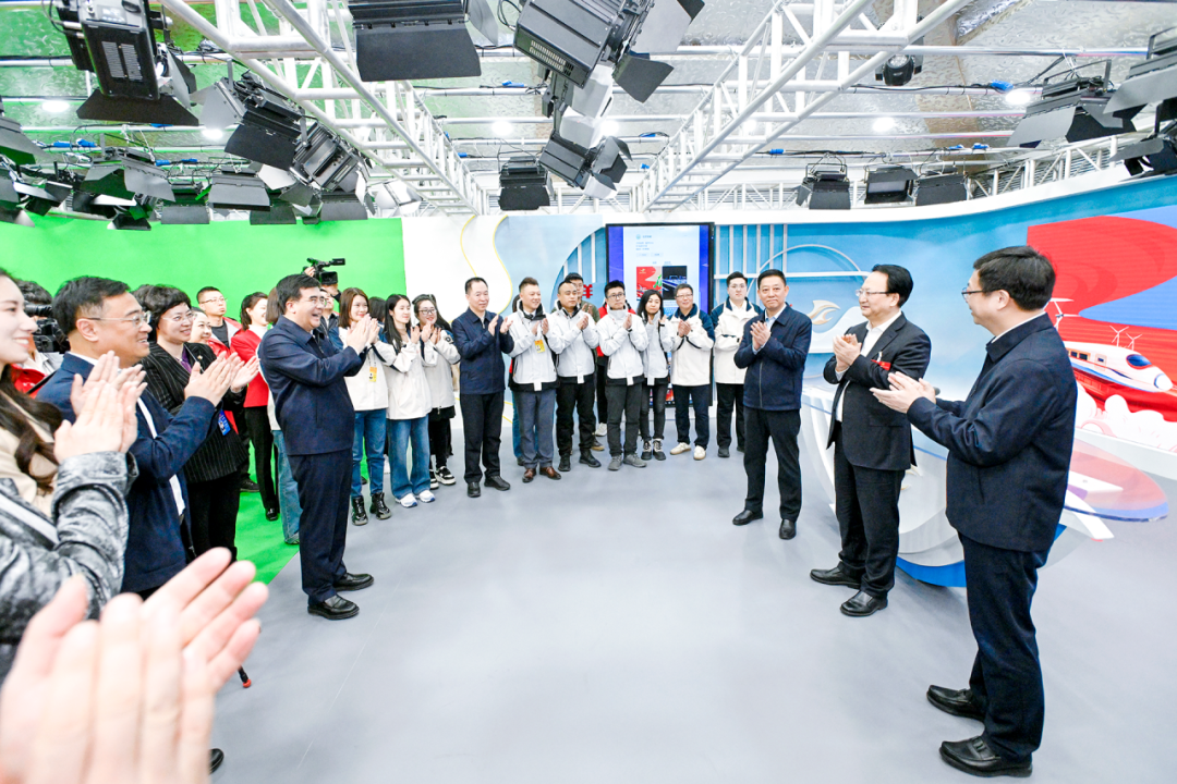 全国两会期间,省直新闻单位与中央新闻单位全面配合、通力协作,不断创新媒体深度融合的内容生产和呈现方式,推出了一系列高质量高水平的优秀报道和融媒产品。景俊海、胡玉亭、朱国贤实地察看吉林日报、吉林广播电视台、中国吉林网前方工作室和演播平台,详细了解新闻报道采编刊播等制作流程。在充分肯定我省全国两会新闻宣传工作后,景俊海说,连日来,中央和省直各新闻单位统筹前方后方、场内场外、网上网下,精心策划、采写刊播了一批站位高、分量重、有深度、有温度的好报道,充分展现了我省代表委员履职风采和新时代吉林全面振兴的新气象新变化,取得了良好的宣传效果和传播效果。