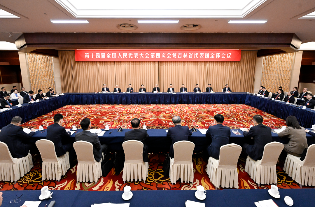 3月3日,出席十四届全国人大四次会议的吉林省代表团在驻地召开全体会议。