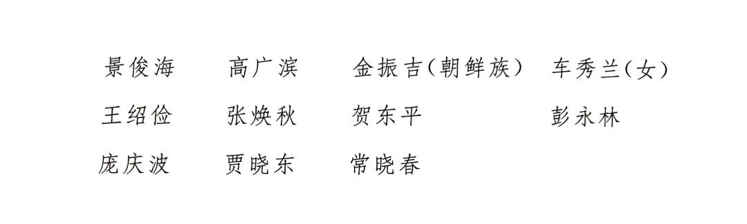 吉林省第十三届人民代表大会第四次会议主席团常务主席名单