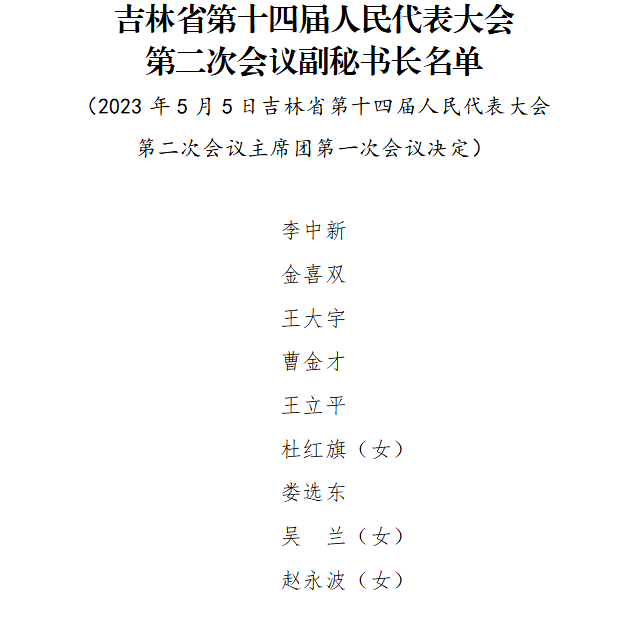 吉林省第十四届人民代表大会第二次会议副秘书长名单