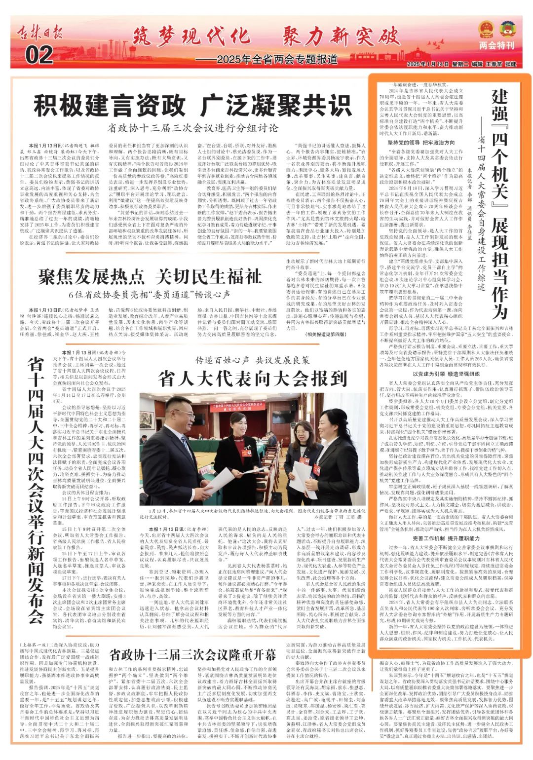 新的一年,省人大常委会坚持以党的政治建设为统领,一体推进人大思想、组织、作风、纪律和制度建设,努力打造让党放心、让人民群众满意的政治机关、国家权力机关、工作机关、代表机关。(文/李娜 李佳星)