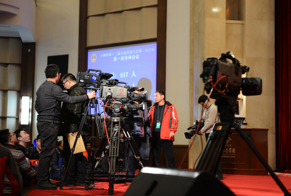 开幕式直播前新闻记者在做最后的准备工作 摄/于漫