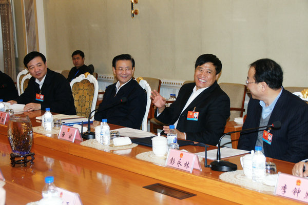 代表审议工作报告。 摄/高峰