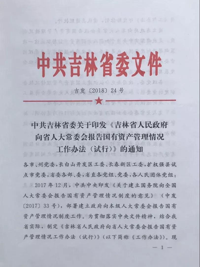 ——建立国有资产报告制度工作获评“庆祝改革开放40周年吉林省全面深化改革优秀案例”