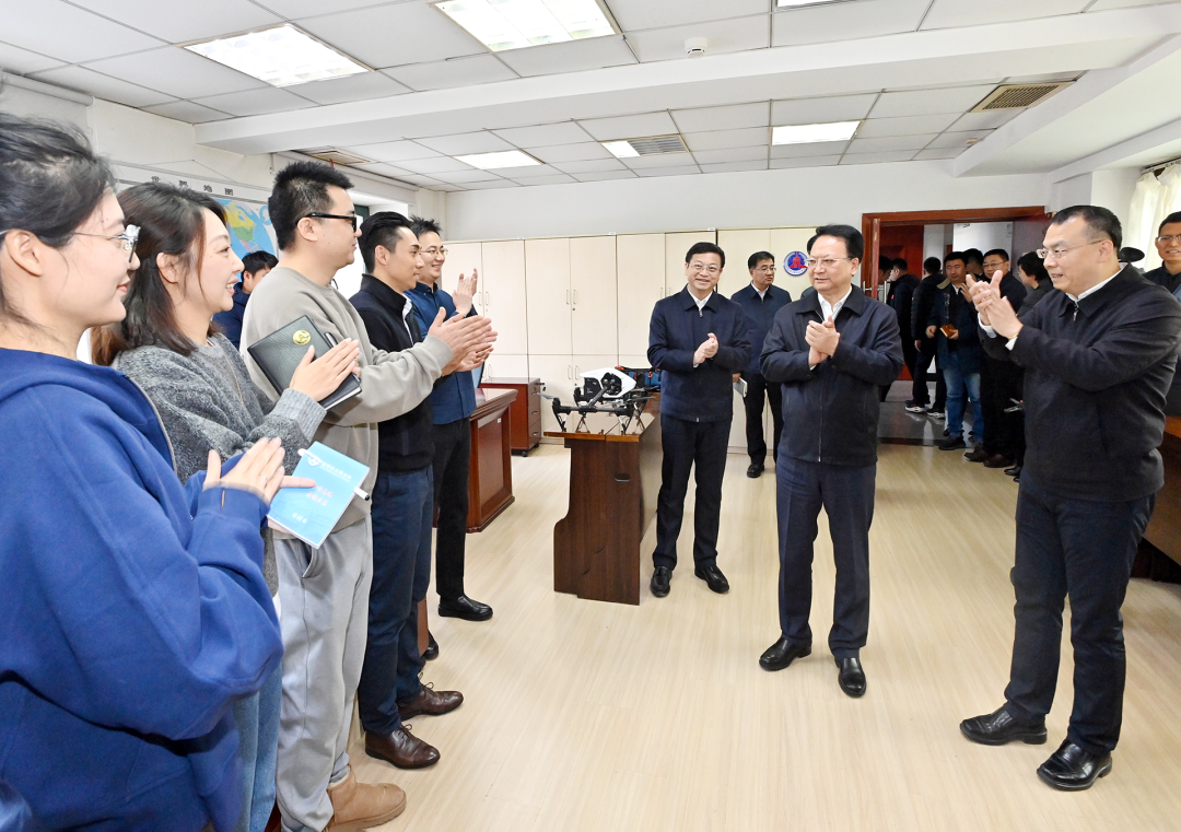 11月15日,省委书记景俊海到新华社吉林分社调研,实地察看新闻采编、智库建设等工作情况。