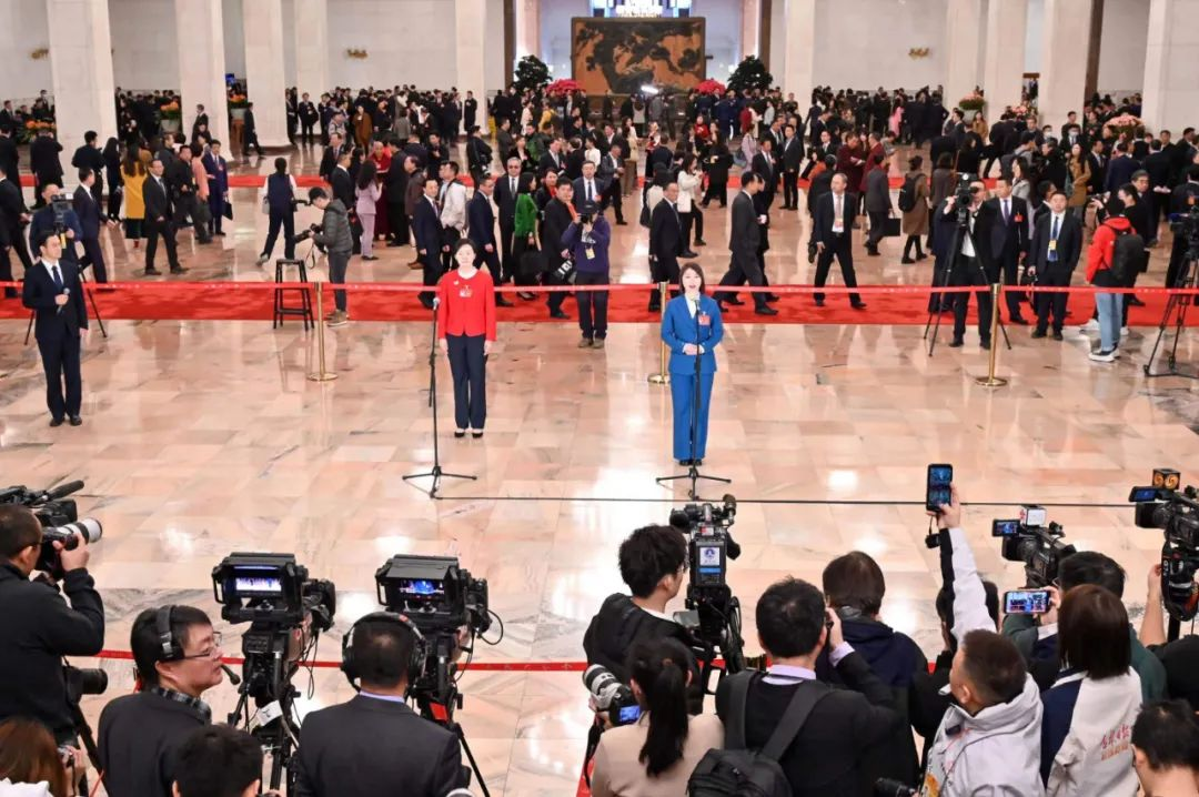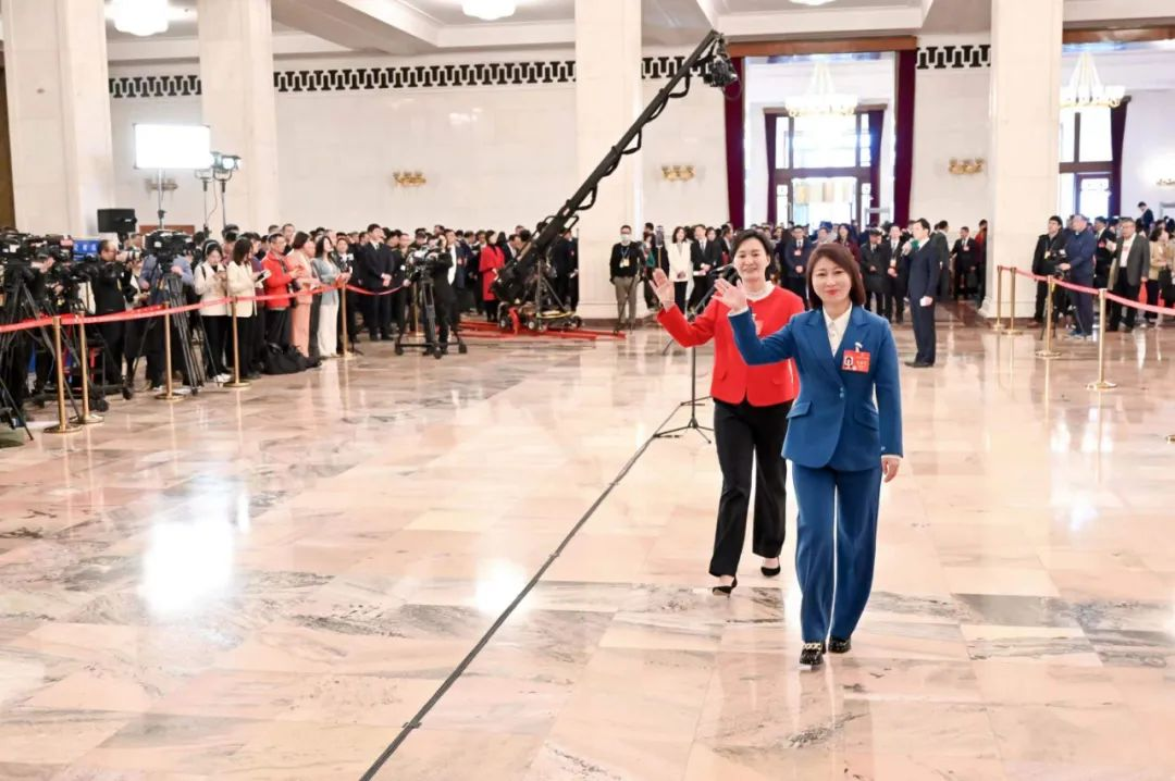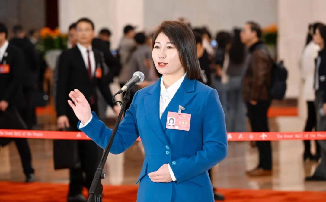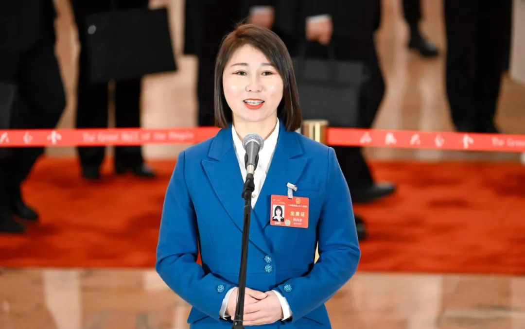 我省全国人大代表韩凤香在“代表通道”上接受采访