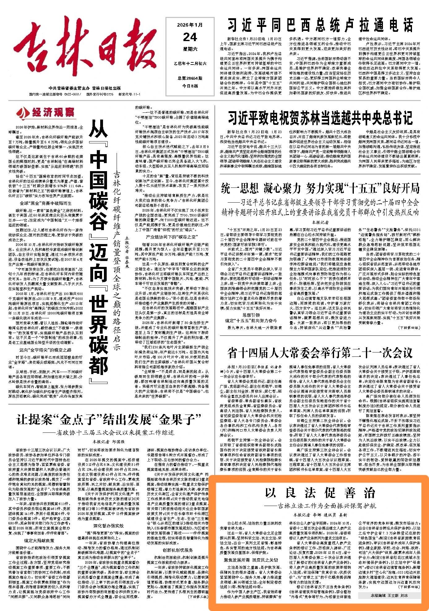 站在新的历史起点,省人大常委会将持续推进高质量立法,把党中央决策部署、省委工作要求转化为刚性制度规范,把人民群众对美好生活的向往融入每一部法规条文,为吉林高质量发展提供更加坚实有力的法治保障。(文/李娜 姜新)
