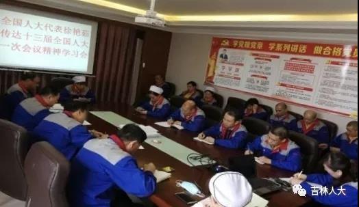 日前,吉林省四季盛宝纺织有限公司召开学习贯彻十三届全国人大一次会议精神学习会。全国人大代表、后纺车间挡车工徐艳茹传达了十三届全国人大一次会议精神,畅谈了参加大会的感受。与会人员还集中收看了习近平总书记在闭幕会上所作的重要讲话。