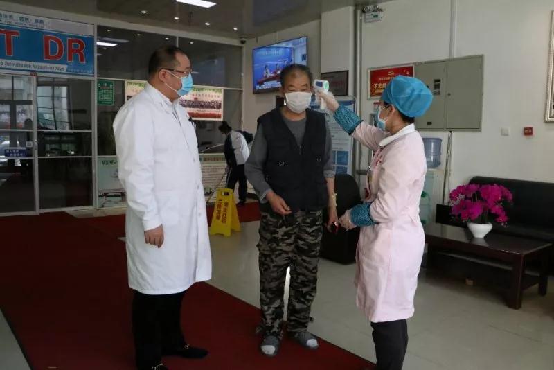 县人大代表、抚松县洪起房地产开发有限公司总经理接洪起捐赠抚松镇电子体温计,捐款一万元整。