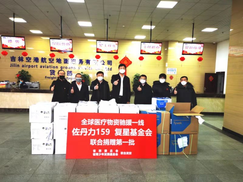 2月4日中午,佐丹力健康产业集团(吉林)有限公司与上海复星公益基金会联合捐赠的第一批医用物资包括500个N95医用防护口罩、500件医用防护服和1000件防水防护服已空运至长春龙嘉机场,这批防护物资将由吉林省慈善总会和吉林省青少年发展基金会负责发放到全省各大医院和疾控中心。2月5日,第二批2000件医用防护服和2000个非医用口罩等医护物资也已运达。后续,还将有八九批物资陆续运抵长春,并分发到急需的省内各大医疗机构和疾控中心。