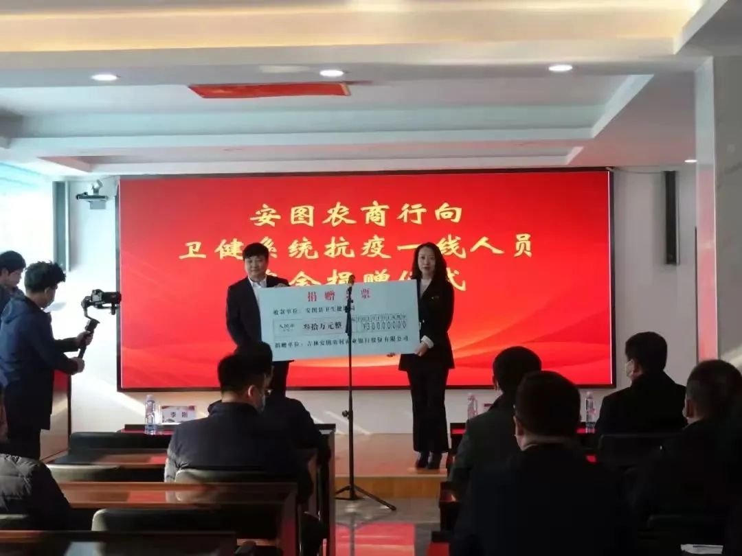 延边州、安图县两级人大代表,吉林省安图县农村商业银行董事长李刚代表银行捐款30万元。他说:“奋战在一线的医护人员非常辛苦,作为服务县域经济发展的本土银行,理应出一份力、尽一份责,齐心协力打赢疫情防控阻击战。”
