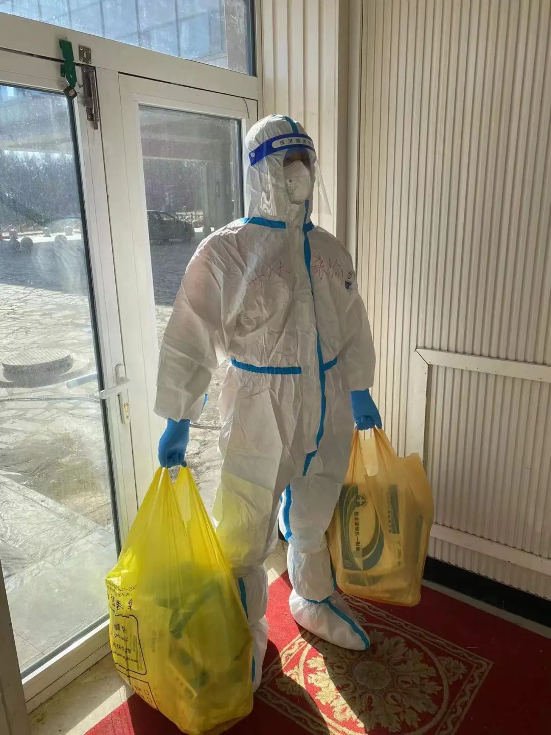 当最终到达隔离楼层后,张榆又忘记了疲惫,认真嘱咐每位隔离人员不要出房间,做好餐盒的消毒等事项。每次下楼前他都对着走廊喊一句:“可以取餐了,大家加油!”这简短的一句鼓励,为隔离人员带来的是温暖和信心。