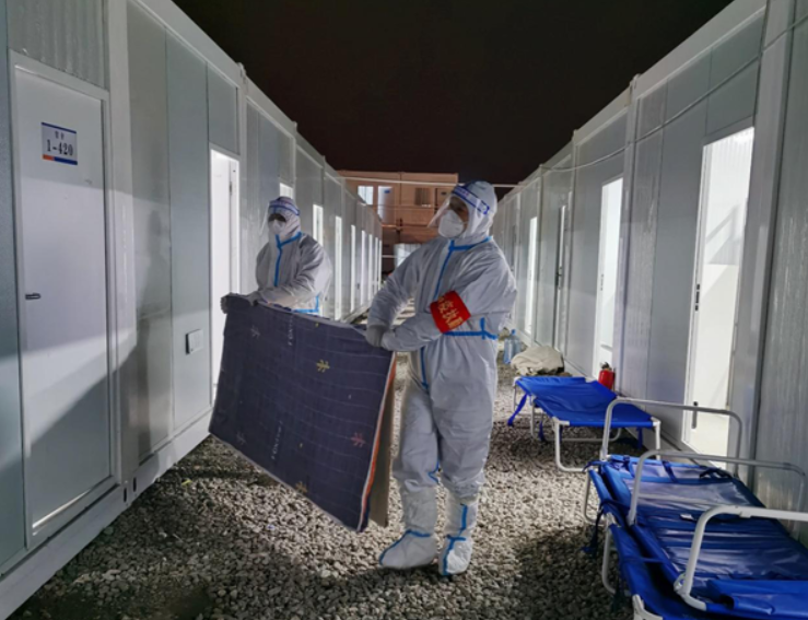 岳立新闻令而动,与队友们紧急奔赴任务地点,逐个房间清理垃圾、打扫地面、调整床位、摆放生活用品……一个个房间收拾下来,队员们防护面罩上雾气升腾,密不透风的防护服内早已汗水淋漓。为了保证按时完成任务,岳立新和队友们分秒必争,不敢稍作片刻歇息,硬是提前两个小时圆满完成了这项艰巨任务,共清理方舱720个房间,约15000多平方米,为救治病患赢得了宝贵时间。