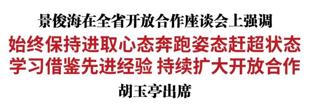 6月17日,省委书记景俊海主持召开全省开放合作座谈会。省委副书记、省长胡玉亭出席会议并讲话。