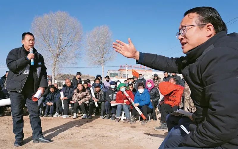 基层民主是全过程人民民主的重要体现。图为2024年1月17日,在甘肃省临夏州积石山县石塬镇宋家沟村灾后重建协商会上,乡镇干部、村干部与村民共同商议灾后重建相关事宜。 新华社记者 马希平/摄