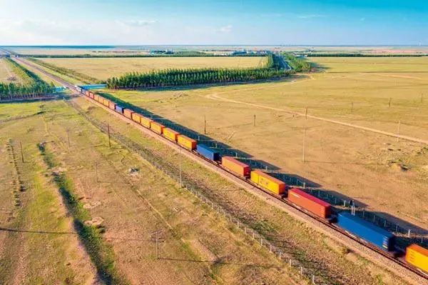 中欧班列(“十四五”重大工程项目之一)是深化我国与沿线国家经贸合作的重要载体和推进“一带一路”建设的重要抓手。图为中欧班列驶过锡林郭勒草原。图/视觉中国