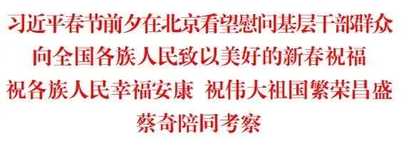 中华民族传统节日春节即将到来之际,中共中央总书记、国家主席、中央军委主席习近平在北京考察并看望慰问基层干部群众,向全国各族人民和香港同胞、澳门同胞、台湾同胞、海外侨胞拜年!祝愿海内外中华儿女在农历马年龙马精神、身体健康、事业有成、阖家幸福!祝愿伟大祖国山河锦绣、风调雨顺、繁荣昌盛、国泰民安!