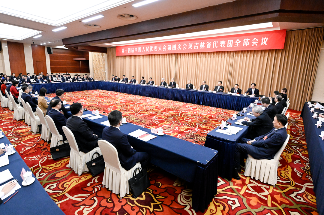 3月5日,出席十四届全国人大四次会议的吉林省代表团举行全体会议,审议政府工作报告。