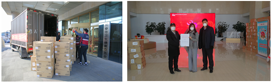 代表王心睿所在的亿联银行向长春市和南关区捐赠六万只、价值80万元的口罩。