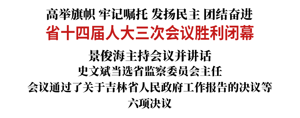 吉林省第十四届人民代表大会第三次会议历时4天,在全体代表共同努力下,取得了圆满成功,1月27日下午在省宾馆闭幕。