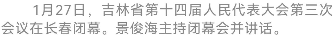 闭幕会上,景俊海指出,省十四届人大三次会议,在全体代表和与会同志共同努力下,圆满完成了各项议程。这次大会是在新时代吉林全面振兴新征程扬帆起航的关键节点召开的一次十分重要的会议,是一次高举旗帜、牢记嘱托、发扬民主、团结奋进的大会,必将激励全省人民在新时代新征程接续奋斗、砥砺前行,信心百倍走好高质量发展、可持续振兴新路,汇聚起新时代吉林全面振兴率先实现新突破的磅礴力量。