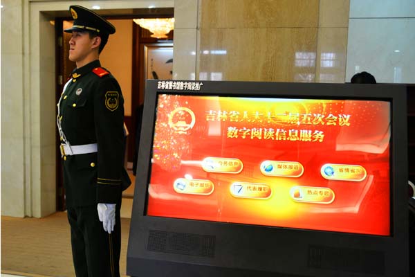 触摸屏的“媒体关注”栏目,实现了对会议信息的实时发布。省长作的政府工作报告刚一结束,触摸屏上就可以检索《政府工作报告》的全文,还可以查阅当天的《吉林日报》和地市级党报的电子版。在“代表履职”栏目,今年增加了更具有实用性的信息,比如在监督中,如何依法开展质询、询问等。此外,“热点关注”栏目,充实增加至16个专题内容,涵盖了经济新常态、养老并轨、教育体制改革、食品安全、医疗改革、房地产市场等公众关心的热点话题,既包括国家政策解读,也包括我省落实和进展情况。